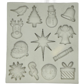 Christmas Assorted Icons 13 Cavity Silicone Fondant Mold with Santa, Reindeer, Snowman, Angel, Tree, Star, Snowflake, Bell, Bird, Gift Box, Candy Cane and Bauble Shapes for Holiday Cake Decorating, Cupcake Toppers, Chocolate, Candy, Soap, Wax Melts & Resin Crafts