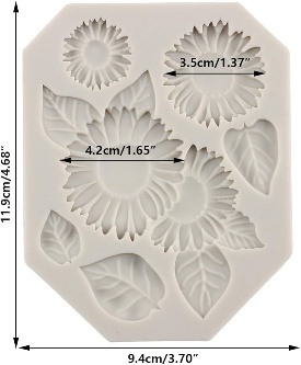Sunflower and Leaves 3D Silicone Fondant Mold with Multiple Flower Sizes and Detailed Leaf Cavities for Cake Decorating, Cupcake Toppers, Chocolate, Candy, Soap & Resin Crafts